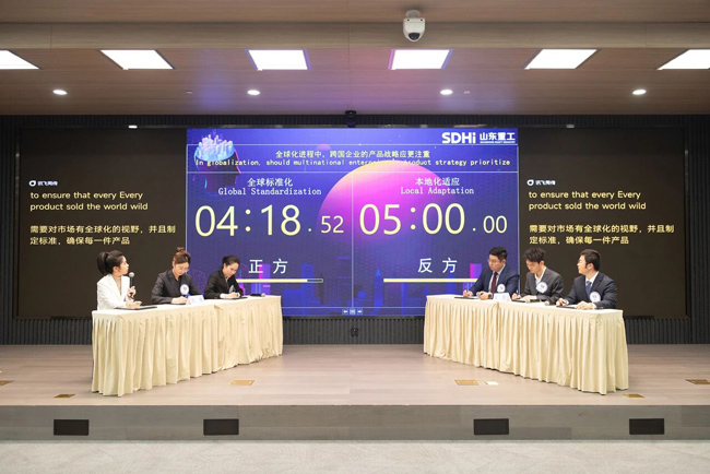 決賽進(jìn)入第四輪高階對決,6位實(shí)力選手重新組隊(duì)開啟3V3辯論賽,圍繞“全球標(biāo)準(zhǔn)化”還是“本地化適應(yīng)”展開唇槍舌戰(zhàn),這場腦力與口才的雙重較量,盡顯重工青年的思辨魅力與專業(yè)底蘊(yùn)。